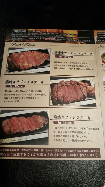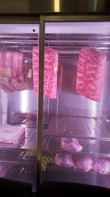 入り口には熟成している牛肉が冷蔵庫で陳列。