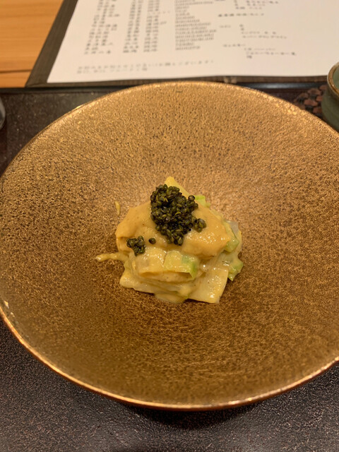 今回は1万円のコースを頼んだが、1.5万円のコースもあり、品数は同じで蟹など季節ものが出されるらしい。あと5000円で店内の全てのアルコールが飲み放題。もちろん日本酒も。今回はわざと飲み放題にせず、アルコールだけでいくらになるかを調べたら、7000円ぐらい飲んだので、やはり飲み放題はお得。