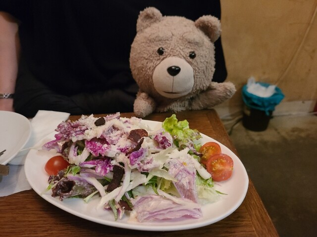 あっという間に完食。口直しにオーダーした紫キャベツが入ったシーザーサラダ風もレモンが効いていて美味。
