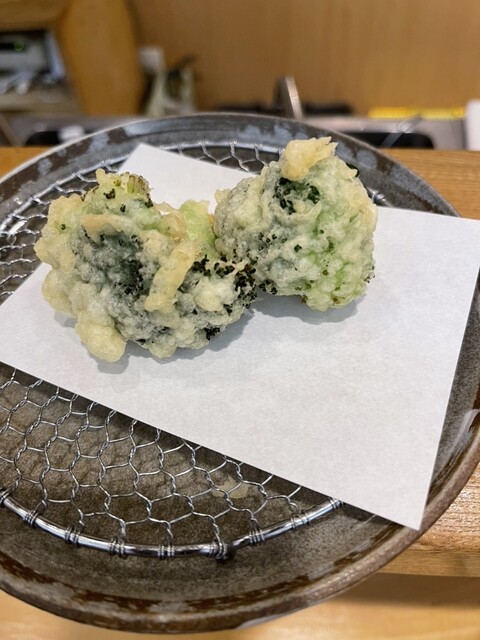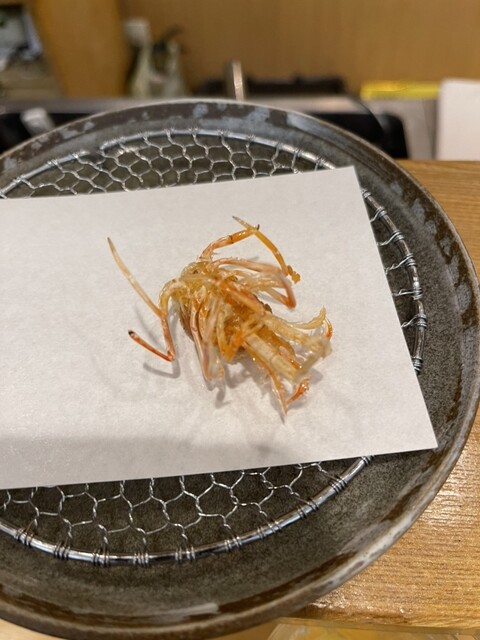 突出しのエビじんじょうから、お刺身からの天ぷら。❗️