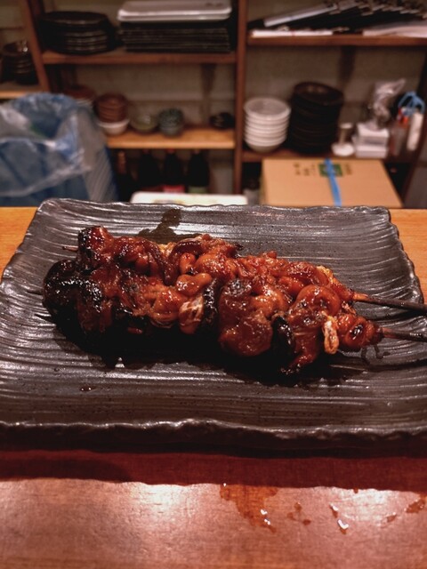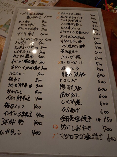 この日のオーダーは定番のマグロ希少部位盛り合わせ、よっぱらい海老、青唐を使った鯛の和えもの、名物豚のあたりめ。本日も美味し楽しい時間を享受です。