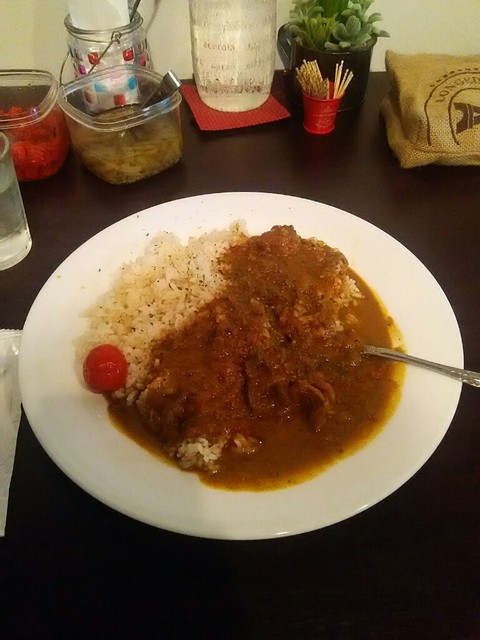 ビルの地下にある小さい店ですが、雰囲気の良さそうなお店です。 おすすめの「やどカリー」を注文して、