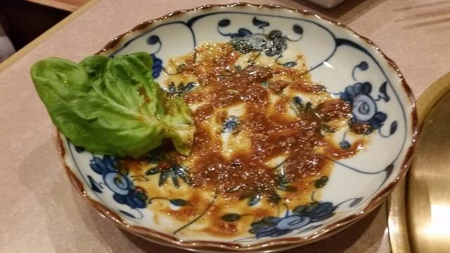 牛もつ味噌煮込み。うまっ!濃厚です。味が濃いのではなく濃厚!ほんのりにんにく?上に乗った京都の黒七味とやらもスパイシー。絶対ご飯と合いますよこれ。タレ一滴すらも残したくない!