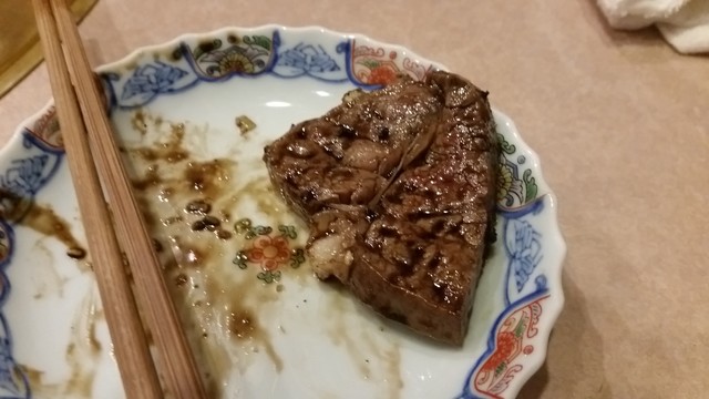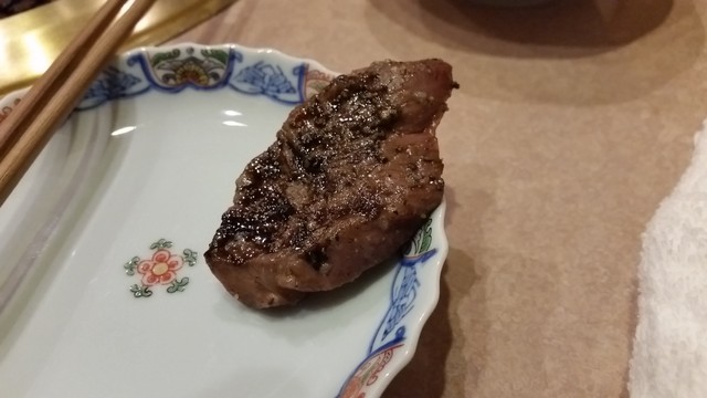 特上ヒレ。これもステーキのよう!質&サイズ考えるととっても安い!!塩やらワサビやらタレやらありましたが、塩で。これはもう至福でした。一人で二人前食べてしまいたかった!w