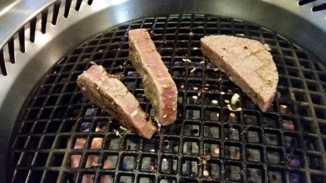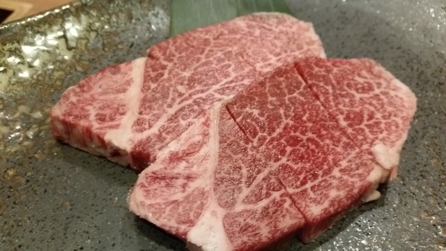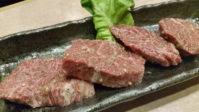 肩ロース ずっと眺めていられるような綺麗なサシの模様ですねぇ。。ちょっと塩がかかりすぎてますが力強い味!(食べ過ぎてたせいもあり)脂は少し重たく。