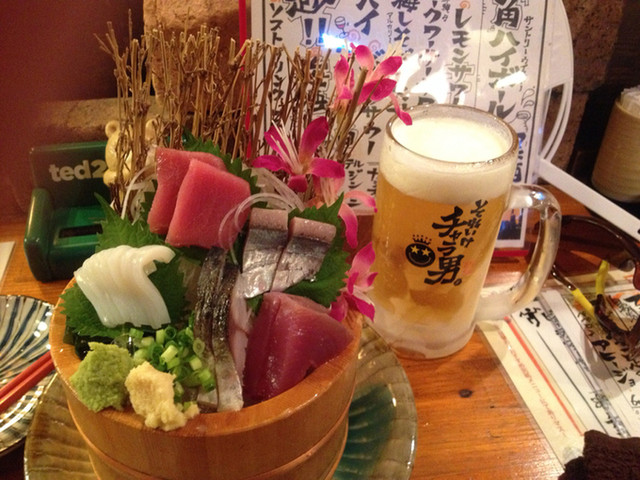 刺身は桶盛りで注文。