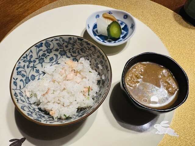最初に出てきたとうもろこしの冷製茶碗蒸し、次に八寸、ハモの天ぷらの温かい碗もの、タイとヨコワのお作り、ハモと太刀魚の棒寿司、カボスのそうめん、ローストビーフ、土鍋で炊いた上澄のご飯、枝豆とおじゃこの混ぜご飯などなど最後にデザートと水出しコーヒー!