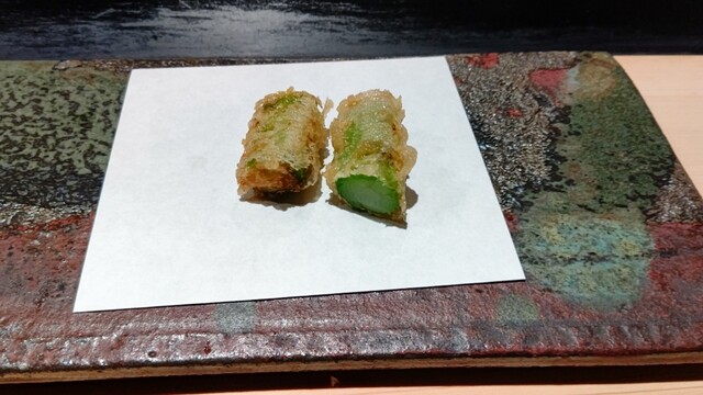 地元の蓮根、アスパラガスは歯切れの良さと瑞々しさのバランスが素晴らしい。