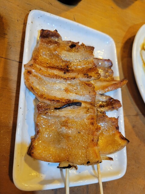 串の種類が多いが、まずその豚バラ串の大きさとその味の良さに驚き。