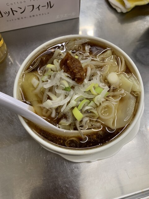 濃いめのスープにワンタン、チャーシュー、竹の子が入っており薬味ネギがドバッとかかっております!