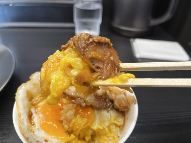 半熟目玉焼きにホロホロのチャーシューのチャーシューエッグ丼。素朴ながら旨いミニ丼