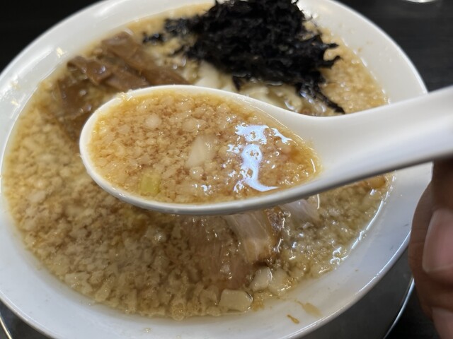 背脂こってりですが、ベースのスープは意外にもすっきりしています。