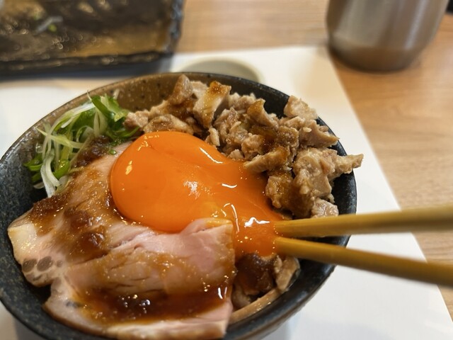 しっとりチャーシューに卵黄を絡ませて至福の旨さ。
