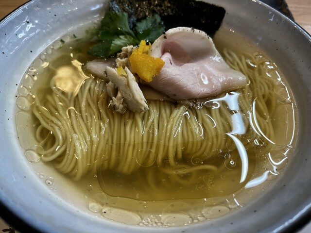 とても美しい盛り付けです。魚介の効いた澄んだスープに爽やかな柚子が香ります。