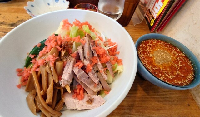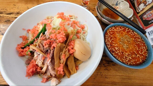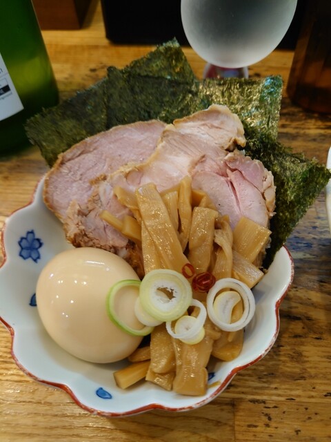 特製つけそば+おつまみメンマ+季節限定カレー玉+日本酒×4