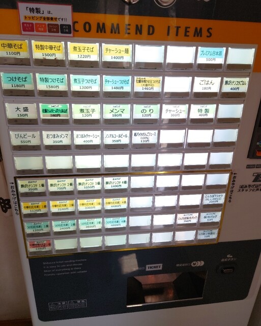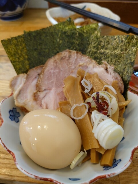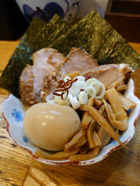 味玉、メンマ、チャーシュー3枚、海苔3枚。