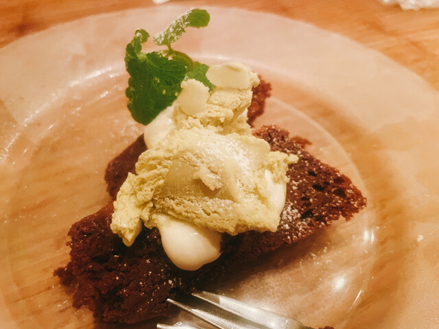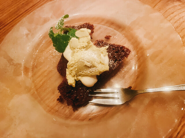 最後はお洒落なフロート付きガトーショコラで、熱くなった口をヒンヤリさっぱりに、