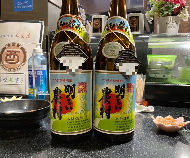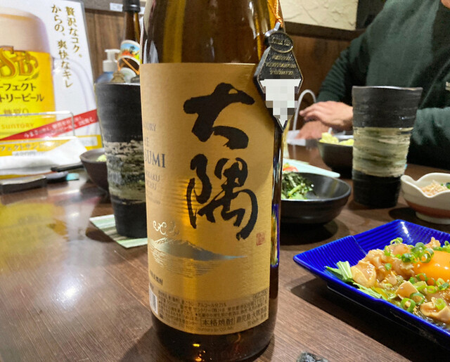 生ビールを3杯飲んだ後は、先輩が置いてあった大隈のボトルで水割りを頂く事に。鹿児島の芋でなく麦焼酎です。いつもは芋派ですが、麦はさっぱり飲みやすいですね。
