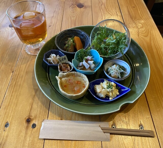 土曜日のお昼に予約なしで訪問。まずは駐車場が大混雑でしたが運良く第二駐車場に駐車。店員さんに伺ったところ30分待てば入れるとの事だったので、待ってから着席。泉州野菜のランチは8種類の小鉢で提供され見た目も鮮やかですべて美味しい。メインの料理は3種類の中から選択したレンコン饅頭。ご飯も1回おかわり無料で前菜と合わせて満腹。別で頼んだアフターコーヒーもルイボスティーわらび餅がついて満足。また訪問したくなる人気店でした。