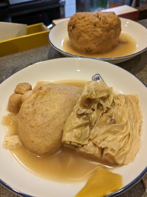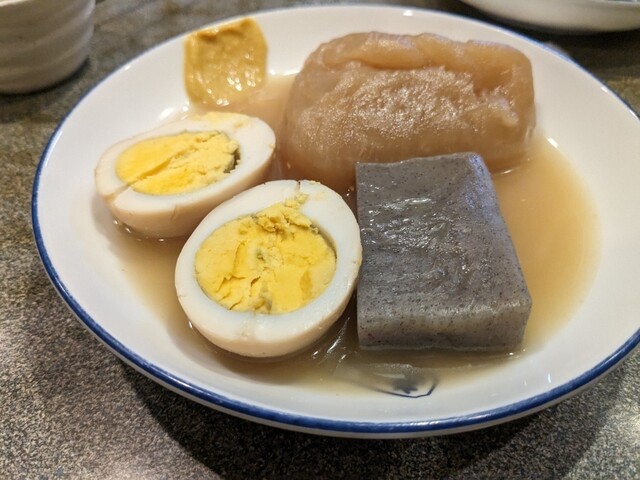 5〜6年ぶりに訪問しました。今まで並んだことはありませんでしたが、おでん好きな友人の期待に応えるため20分位並んで入店しました。名物のたこ、聖護院大根、ねぎ袋などを注文しました。流石180年続く老舗、美味しく頂きました。ワンカップのお酒におでん出汁を注ぎ足す珍しい飲み物も美味しく頂きました。