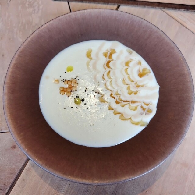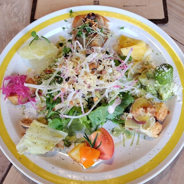 野菜が中心で、前菜はすべて野菜。パッと見で何かわからないですが、時計の12時からメニューの順番で並んでいるのでメニューを見ながら食べるのが楽しい。
