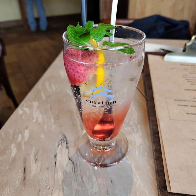 飲み物は、自家製の柚子かレモンのソーダを頂こうかな?と思いながら、おすすめを聞いたところ苺のソーダとのこと。苺はないなと思っていたのですが、おすすめされたので注文。これが、甘さが丁度よく苺の風味が良くて美味しい!おすすめ聞いて良かったです。