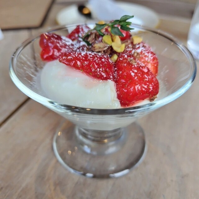 最後のデザートも甘さが丁度よく、苺とパンナコッタの組み合わせも良く合います。その下のチョコのテリーヌも濃厚で美味しい。デザートも美味しかったので、苺のケーキを追加するかどうか迷いましたが、それは次回のお楽しみにとっておきました。