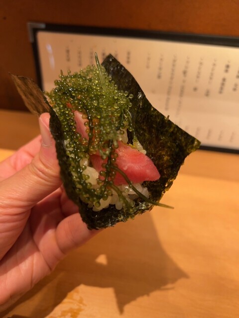個人的には、蟹の料理、本鮪、白子の天ぷら、本鮪と海ぶどうの海苔巻き、しめ鯖が良かったです。