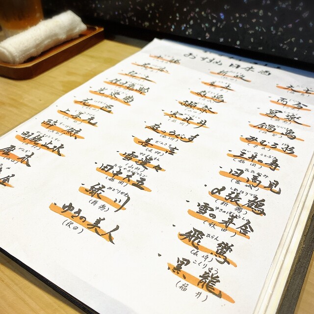 席に着くと目の前にある一枚板(というか梁。先代のカウンター席のまま)がとても良い雰囲気を演出。その奥にある壁は八女の大工さんが一枚一枚手張りで貼られたそうです。そこにドンと一枚板に書き認められた『味勝鮨』。この新旧コラボと伴に、大将のこのセンスの良さに感動し、これから出てくるお料理への期待値も爆上がり♪