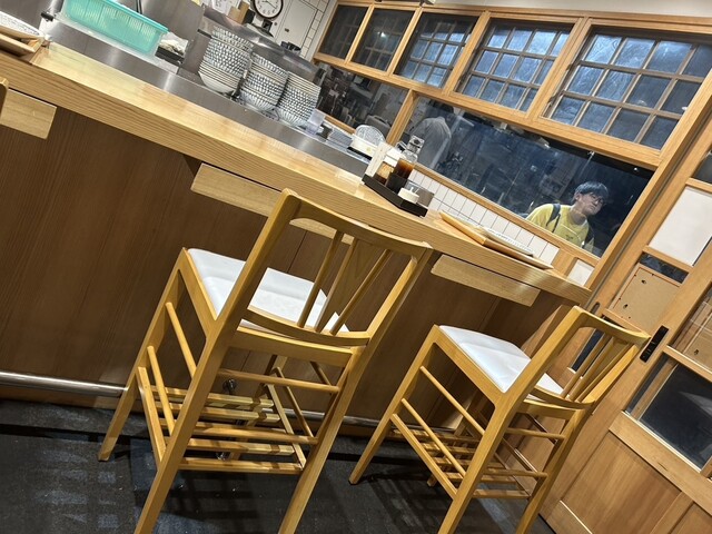 ガラス張りの開放的な店構えは、料理への自信を物語っています。そして、オープンキッチンを囲むカウンターとテーブル席のレイアウトは、揚げたての料理を存分に楽しめる作り。今回は、「ミックスフライ定食の上」と「黒豚ヒレ定食」を注文。