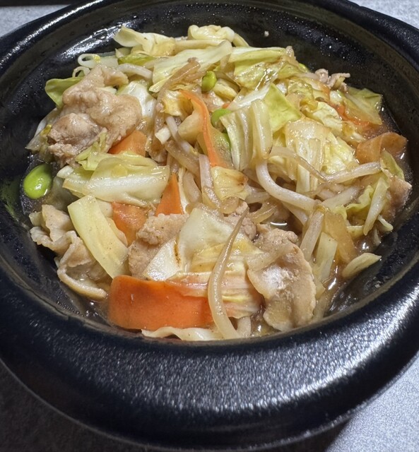 肉野菜炒め、意外に汁だく