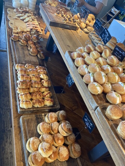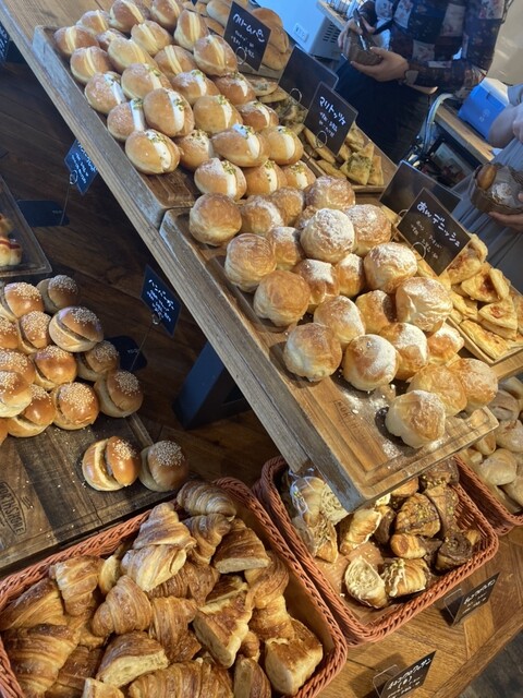 オープンの時間に15分程行列に並んで、角、山、栗あんパン購入。