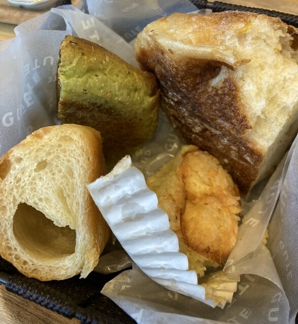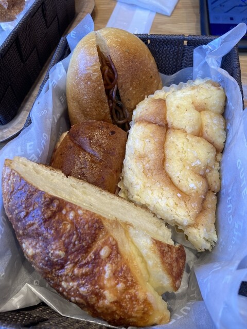 まず席を確保して、ドリンク選んでバスケットに入っているもの1つ選んで温めてもらって先に料金支払い席へ。