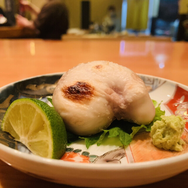 ② 先付2(御年玉1):秋田産虎河豚白子焼き
