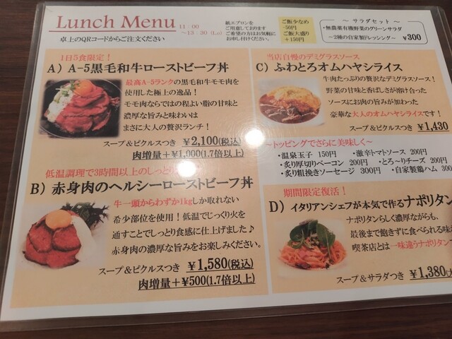 ちょうどメルマガ会員の特典でディナータイムのフード50%OFFが使える誕生日月だったので、すごくお得でした。