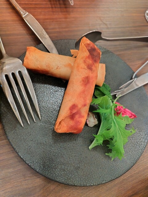 食べ物は本日のオススメやコースメニューの中からアラカルトで頼みましたが、春巻きがちょっと意外な組合せでした。