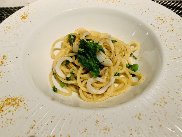 シェフお任せだったので、旬な良い食材で鰤カツや鹿児島豚やパスタも菜の花のカラスミパスタとカルボナーラなど出してもらい、どれも美味しかったです♪