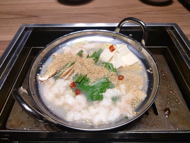 白湯牛塩もつ鍋 〆の自家製麺(ちゃんぽん麺みたい)