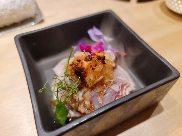 もっと強烈に来るのかなと思ったけど、フワッと香る程度でカツオの邪魔をしていなくて美味い。