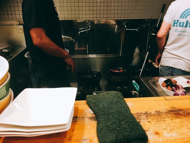カウンター席で待ってる間に、追加でスパムを券売機でポチッと♪