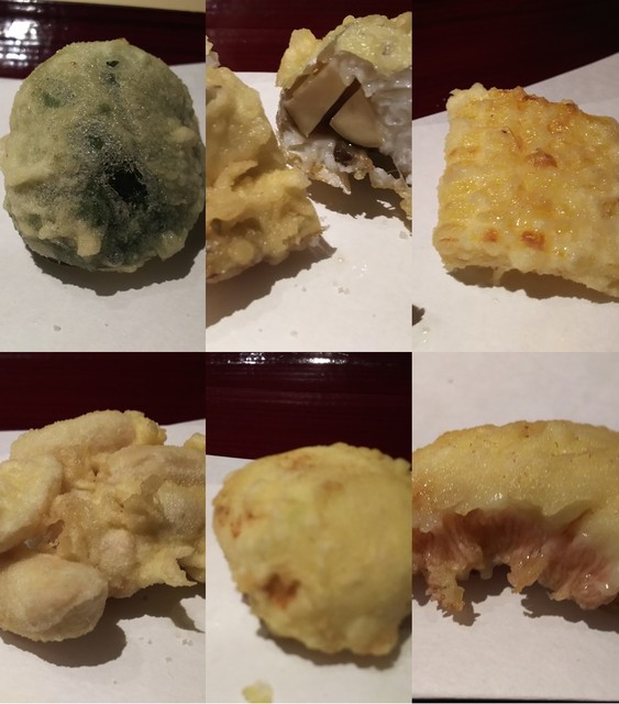 天ぷら:若鮎天ぷら、沢蟹素揚げ わさび菜を添えて