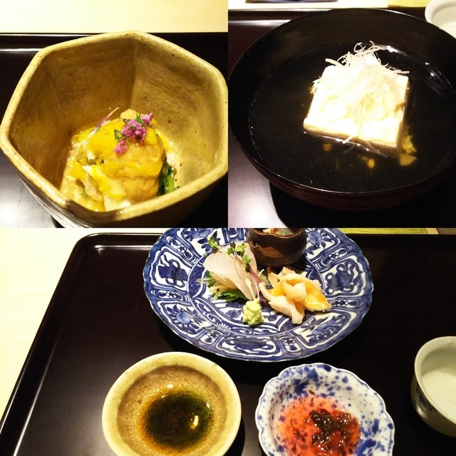 刺身:あこう ポン酢、ホタルイカの味噌を溶いて