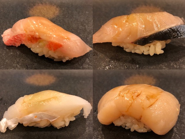 鮨:いか、鰤、金目、鮪ヅケ、白身?中トロ、
