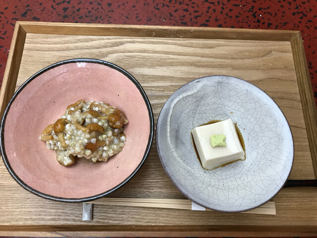 そばの実のなめこおろし和え・胡麻豆腐」