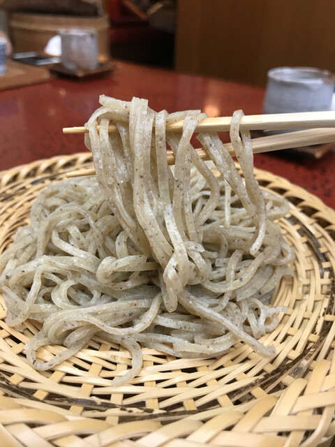 やや、中細、玄そば挽き、ちょっと黒目、シャープなエッジ、十割ではなく