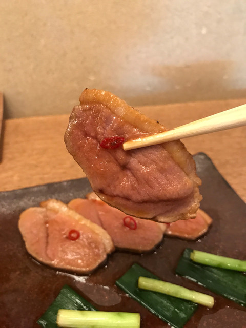 なんと!見目麗しい!!!鴨ロース、青ネギ、唐辛子の色バランスが!抜群!