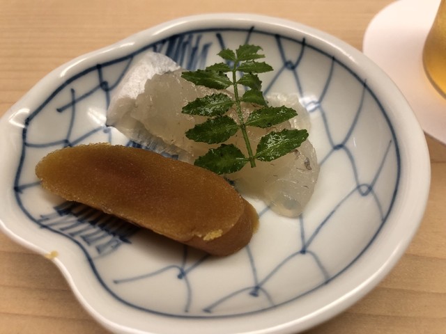 初手:鮃昆布締め・・・この色!!!解る人にはわかるでしょう