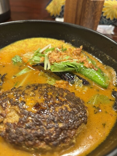 札幌出張と言えば、味噌ラーメンだったけど、札幌出身の先輩からのアドバイスもあり、スープカレー初挑戦。まさに絶品、もっと早く食べとけばよかった。注文したのは、1番人気っぽいハンバーグが入ったもので、スープも3種類からの選択式。今回はこれまた1番人気っほいエビベース。これに焼きチーズのトッピング。カレーの中、もしくはご飯の上が選べる為、ご飯の上に。