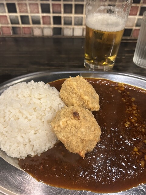 揚げたてのコロッケはクリーミーで、ビールにもカレーにも相性抜群です。