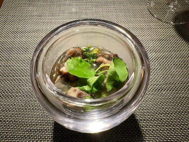ということで、すごく久しぶりの4回目の来店。ほかの客もおらず貸し切り。前日にお酒をたくさん飲んだような気がするので、今回はワインハーフペアリングに、ついでにノンアルペアリングも。シェフに伺いたかったこともゆっくり聞くことができて素敵なランチでした。